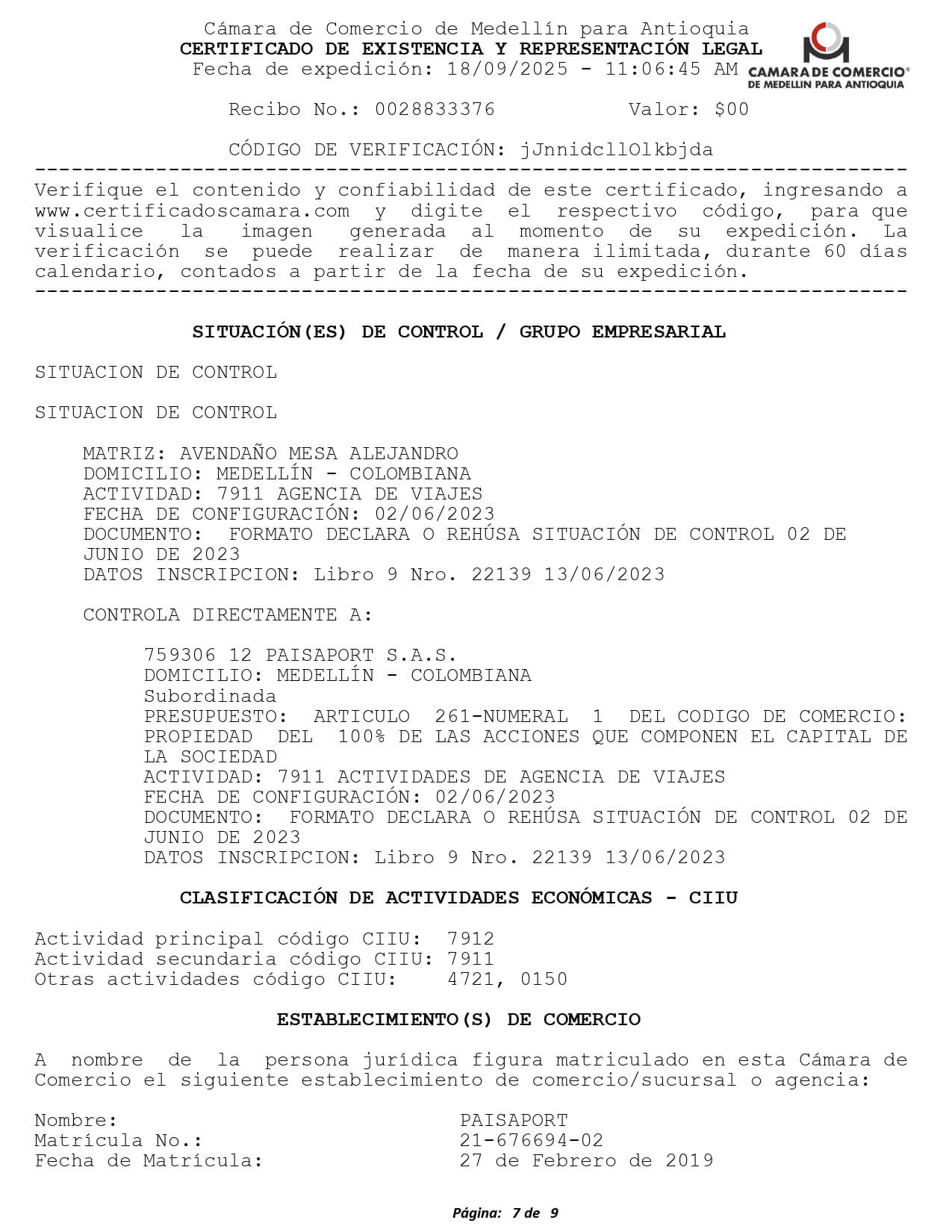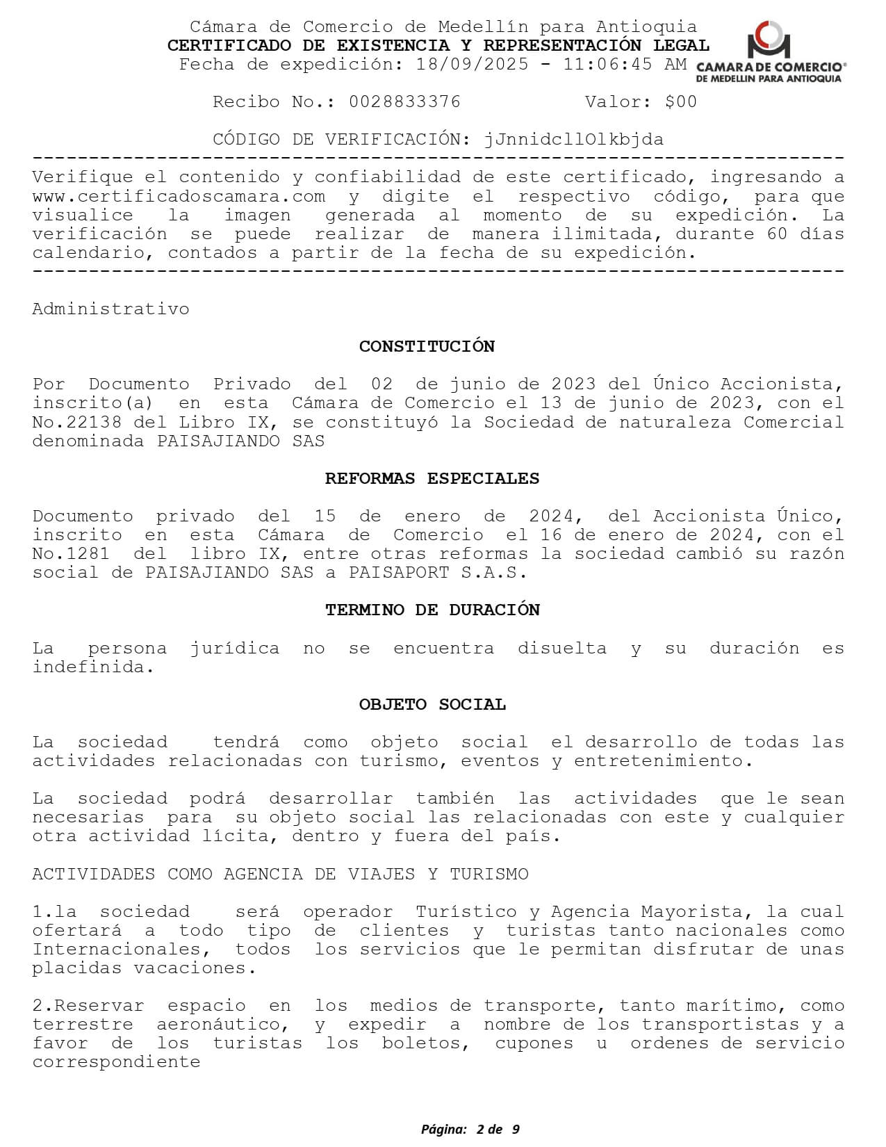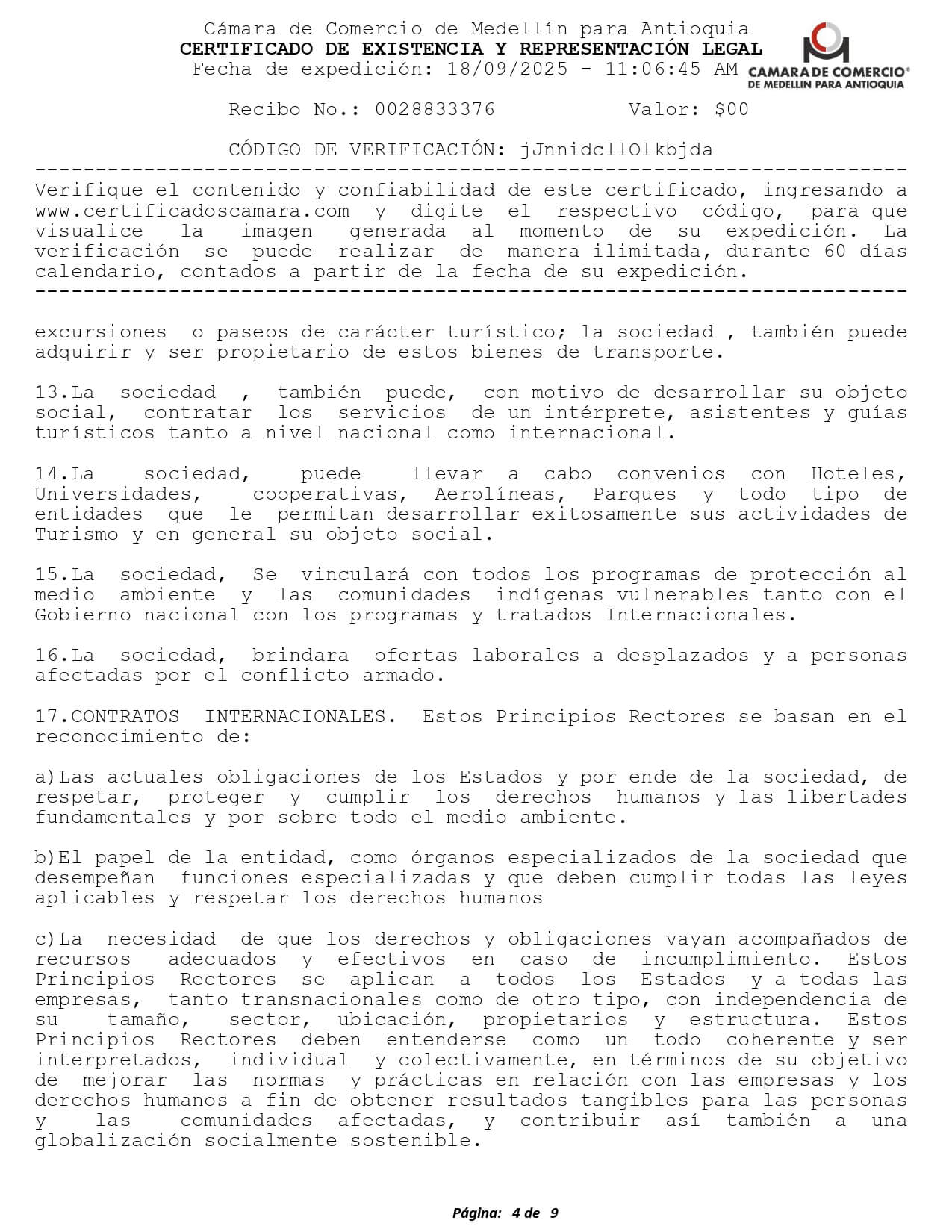 Nosotros como empresa tenemos todos los documentos que avalan nuestra operación como agencia de turismo. Registro Nacional de Turismo Asociación Internacional de Transporte Aéreo (IATA) Registro ÚnicoTributario PCI DSS SAQ Certification v4.0 Certificado de Existencia y Representación Legal Florida Seller of Travel License Certificado de Industria y Comercio Certificado de Implementación SG-SST Aviso de Operación y Licencia Panamá Cámara de Comercio Honduras Permiso de Operaciones Honduras Certificado SECOP II